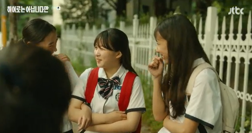 이나가 용기내서 깨졋다고 이야기 하지만 친구들은 보이지도, 들리지도 않다다며 이나를 투명인간 취급하며 무시하고 재밌다는 듯 웃고 있습니다.