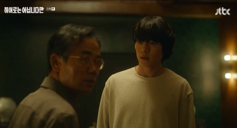 자신의 거짓말을 눈치챘듯한 이나의 혼잣말을 듣고 당황한 귀주,