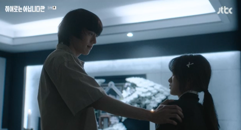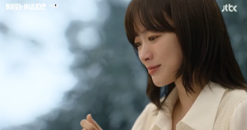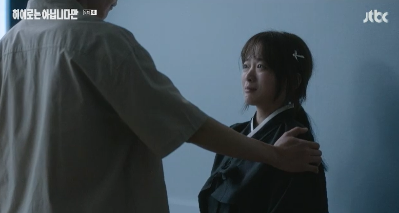 토닥토닥하듯 말없이 자신의 어깨를 잡아주는 귀주에게 누구세요 라고 경계하던 다해는 이내 말이 없지만 전해지는 따뜻한 위로에 결국 참았던 눈물을 흘립니다.