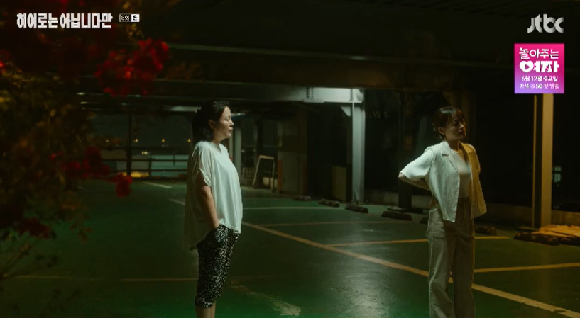 틈만나면 수작을 부리는 다해. 지나가는 남자와 부딪히는 척 하더니 아는척을 하고 결국 뒤이어 나타난 남자의 아내가 밤마다 디엠보내는 년이 너냐며 시비가 붙으려고 하자 귀주가 끼어들어 다해를 데리고 도망칩니다.