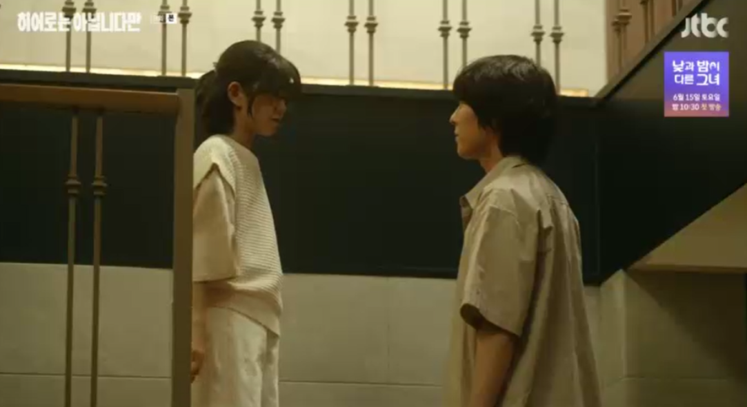 다해를 따라 나온 귀주에게 다해는 반말투로 뭘바라냐고 하자 귀주는 관계 개선을 하자니 말부터 까냐며 자신도 말을 놓습니다. 그러고는 다해와 끝내던 시간을 되돌려서 다해를 잡겠다며 타임슬립으로 사라져 버린 귀주.
