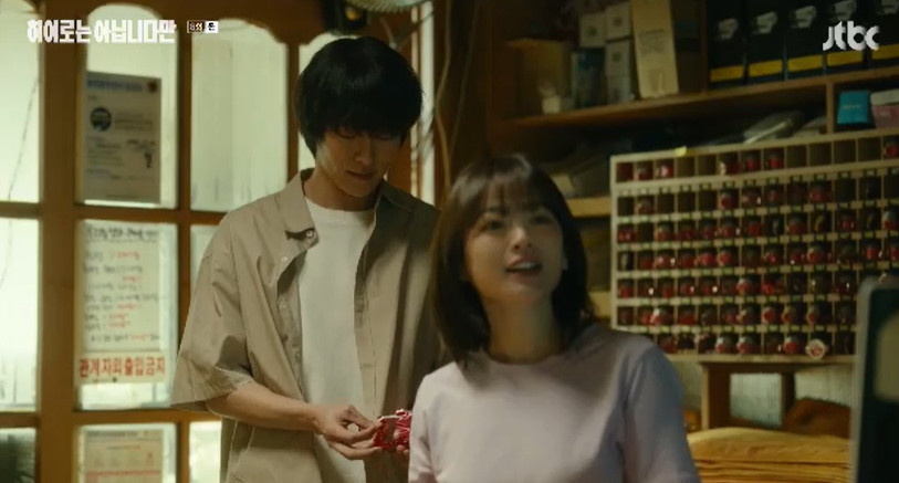 팥빙수를 사다주고, 말없이 자신의 이야기에 귀기울여 주는 귀주에게 마음이 열린 다해는 화재사고 이야기를 하며 자신을 구해줬던 사람이 자신에게 반지를 줬었다며 유품을 가져다가 선배에게 주라고 이야기 합니다.