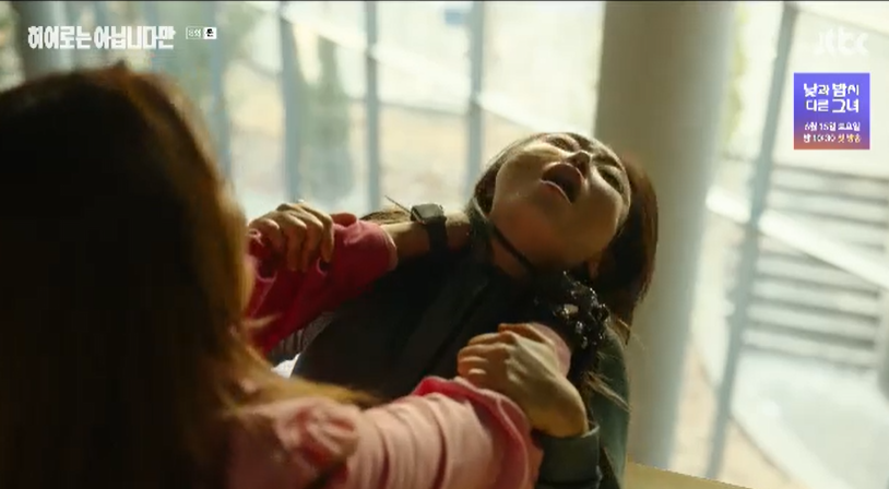 동희가 떨어졌던 계단에서 밀어버릴 듯한 기세의 복동희에게 결국 시키는 대로 뭐든지 하겠다고 약속한 그레이스.
