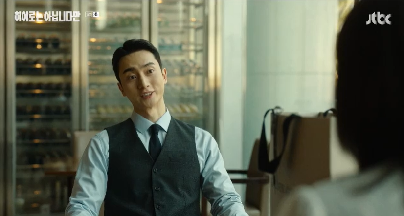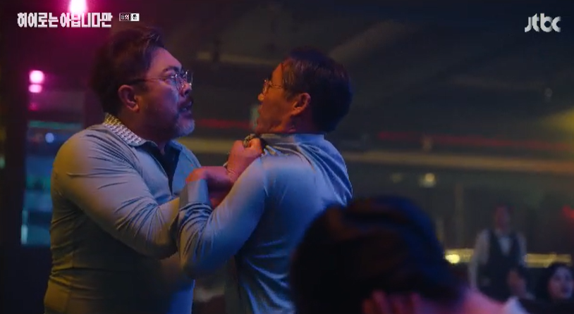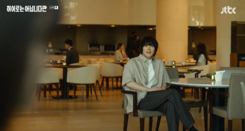 호텔 로비에서 말다툼을 하는 다해와 귀주. 다해는 귀주를 단념시키기 위해 노력하는 중입니다.