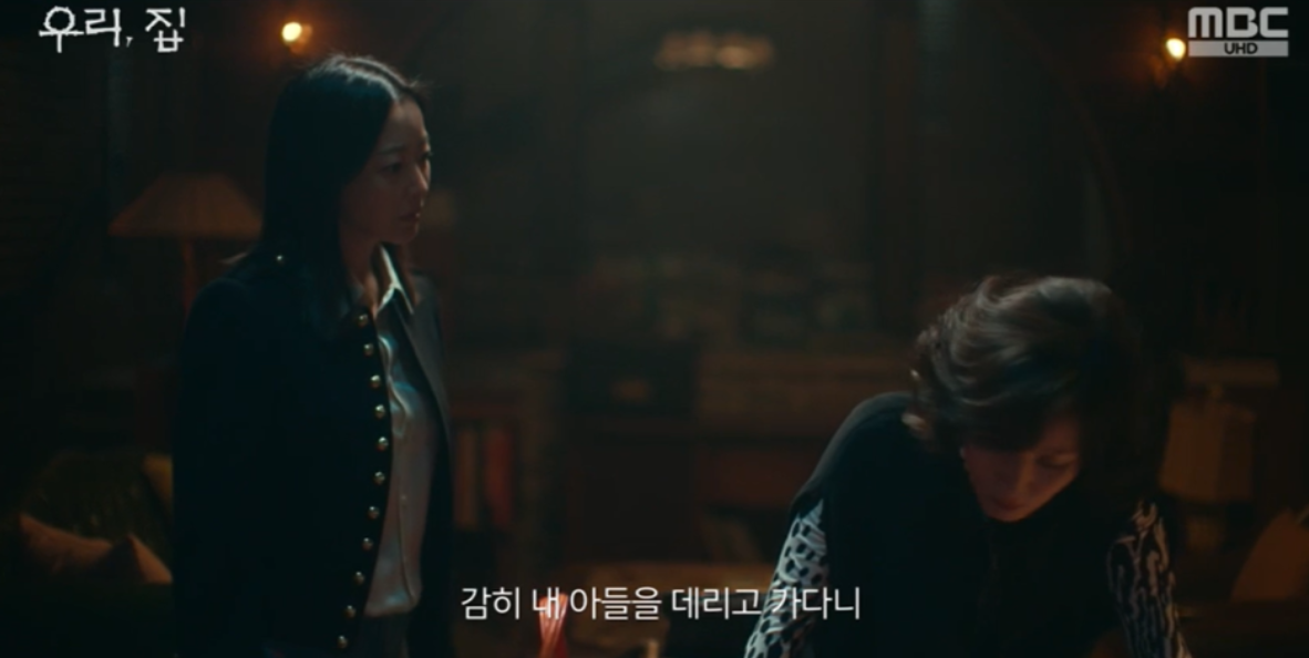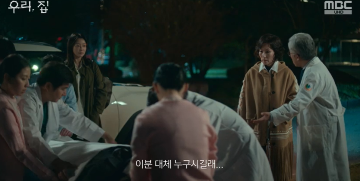 영원이 놀라서 오선생의 상태를 살피는데 어둠속에서 시어머니 사강의 목소리가 들립니다. 사강은 자신을 의심하는 영원에게 본인도 조금전에야 도착했다며 왔을때부터 오선생은 그 상태였고, 죽지는 않았다고 이야기 해줍니다.