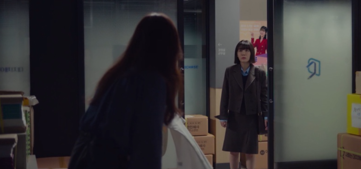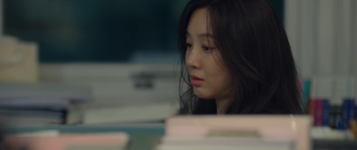 햬진은 화장실에서 마음을 추슬르고 회의실 선풍기에서 옷을 말리는데, 회식을 마친 남청미가 택시비를 아끼기 위해 첫차 시간까지 기다리려고 학원에 왔다가 서혜진을 발견합니다.