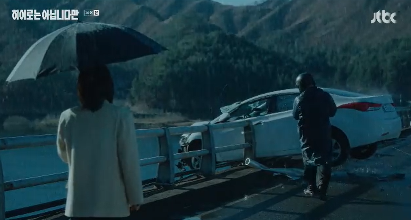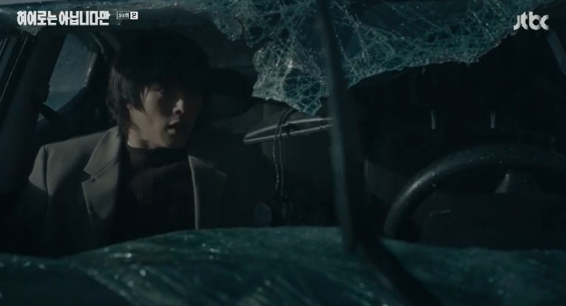 시간여행을 마치고 돌아온 귀주는 빗길에 교통사고가 난 차안에서 있는 자신을 발견합니다.