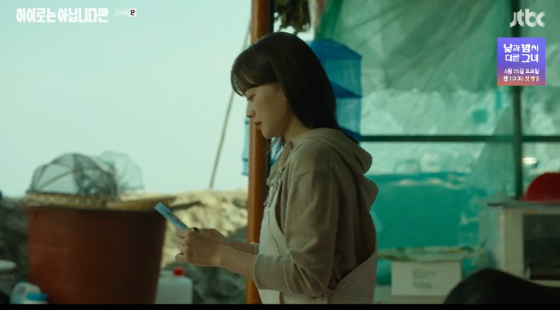 결국 백일홍에게 등떠밀려서 바닷가로 향하는 형태는 썬글라스를 벗고 이나에게 자신의 마음을 읽을 수 있도록 해주고, 이나는 형태를 통해 다해가 살아있다는 것을 알게됩니다.