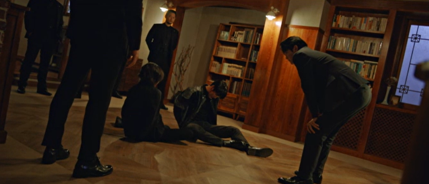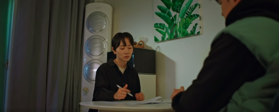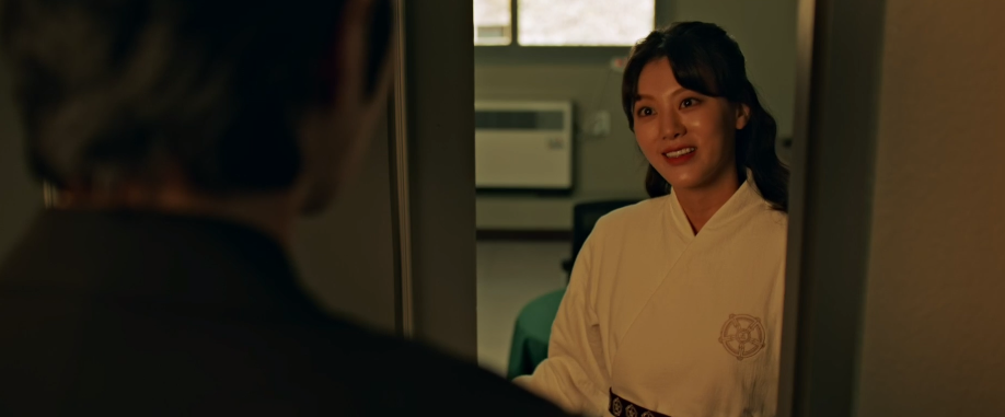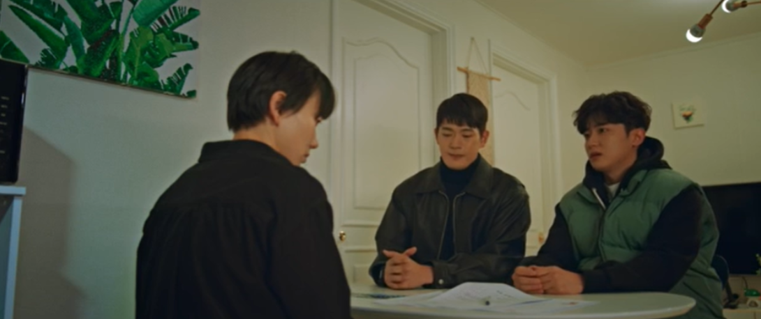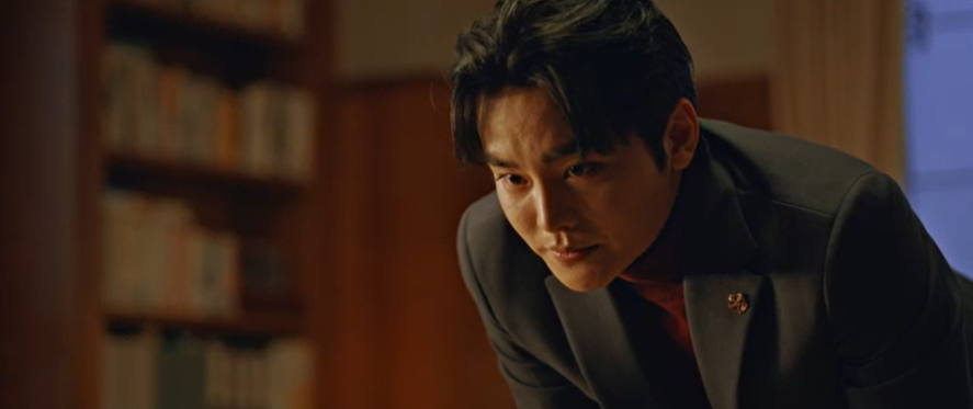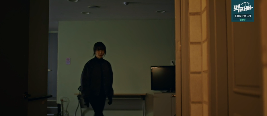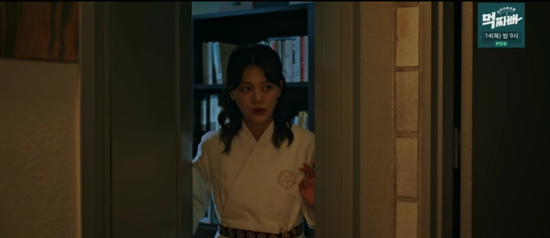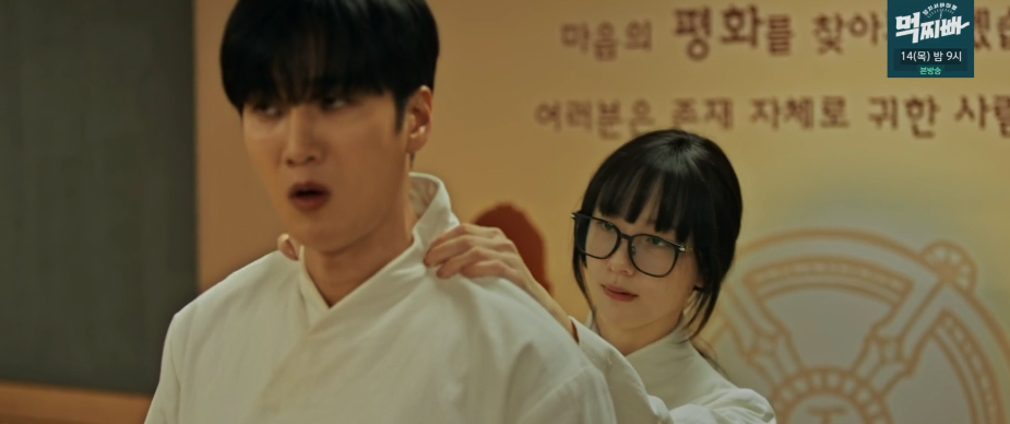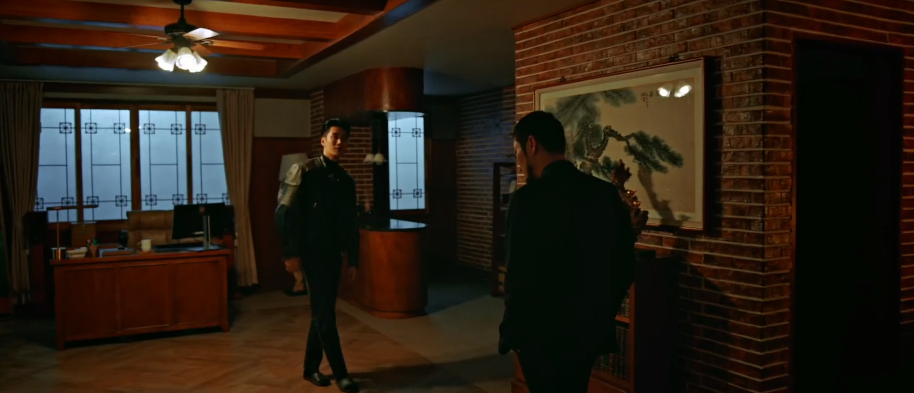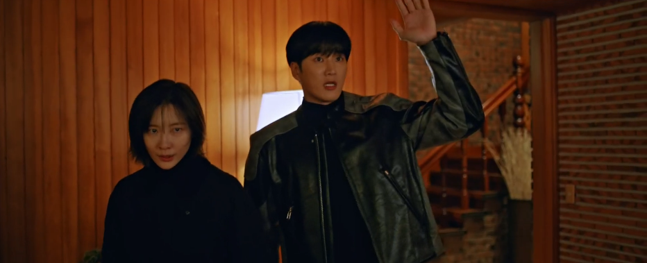 사이비 교주 보리의 사택에 잠입했다가 마주친 강현과 이수. 인기척이 들려 두사람은 발각되기 직전 인데 다행히 강현은 숨고 이수가 배가고파 식당을 찾는 중이였다며 능청스럽게 연기를 해 보리 부하를 속여 위기를 넘깁니다.