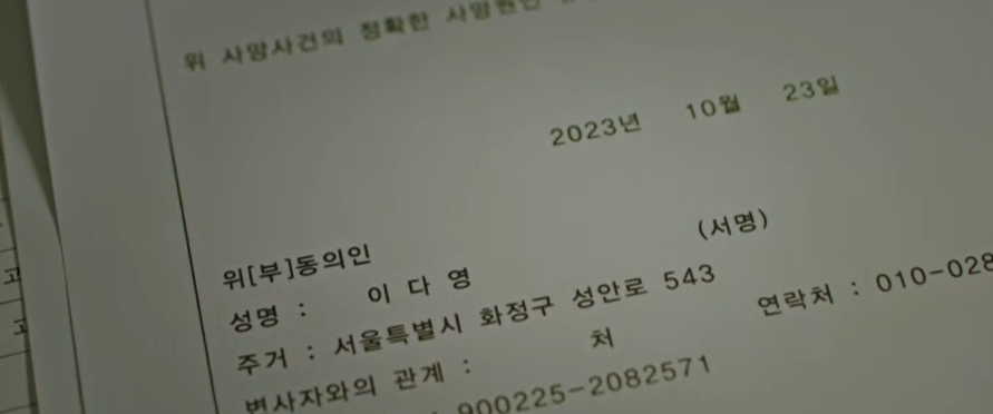 결국 부검 동의서에 싸인을 한 이상욱의 부인.