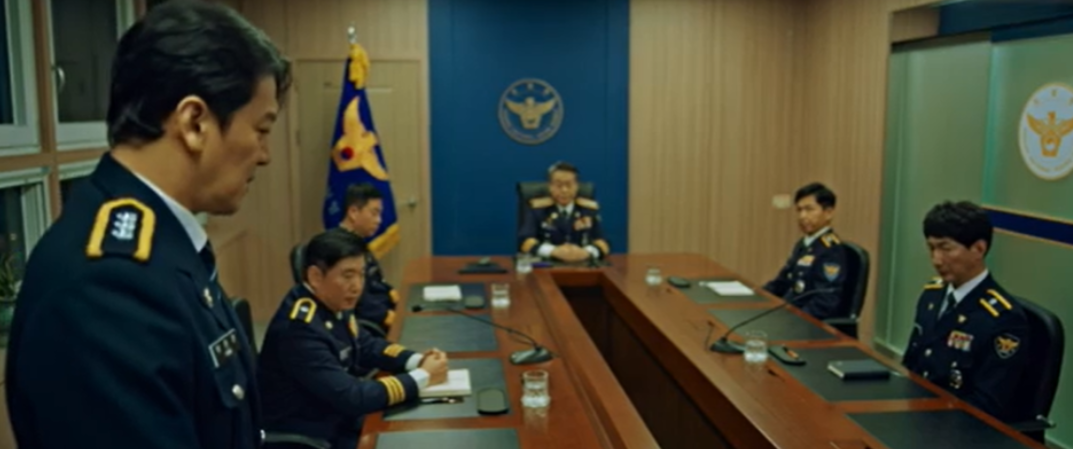 자신의 허락도 없이 특공대가 움직였다는 보고를 받고 화가난 경찰서장 앞에 박찬건이 나타나 영상증거를 제시하며 연행해 갑니다.