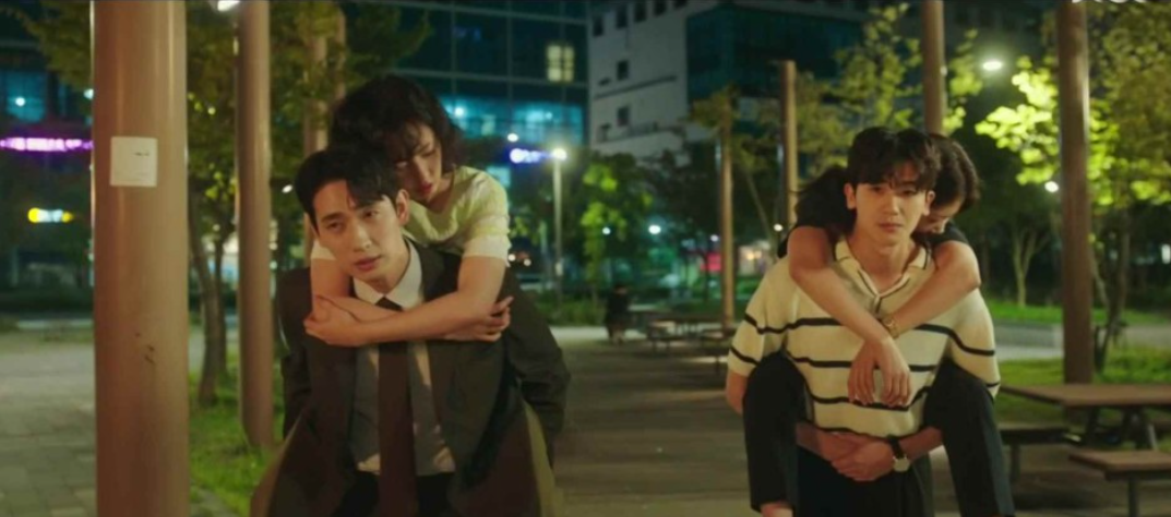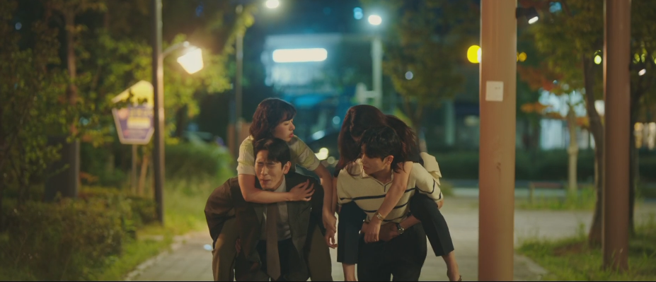결국 대영이 와주어 각각 여친을 업고 귀가하는 길. 등에 업힌 홍란과 하늘은 각자 대영과 정우 편을 드느라 술기운에 투닥거리기까지 합니다.