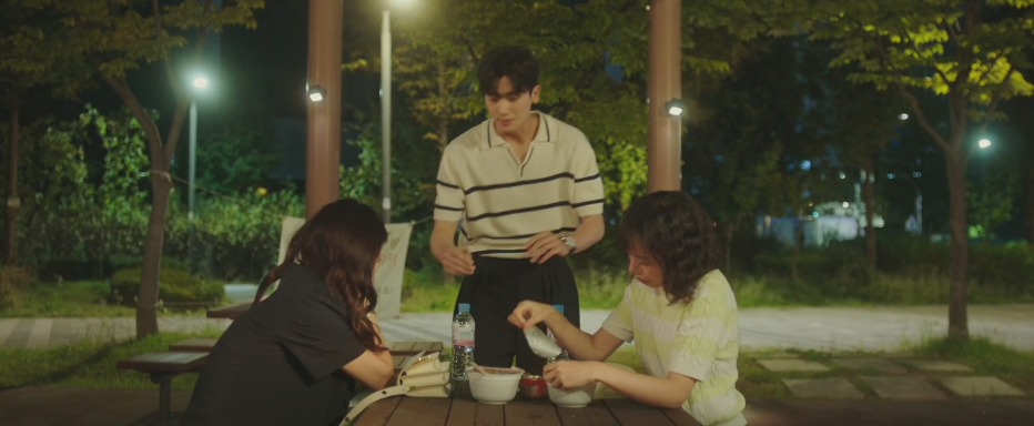 퇴근길에 정우를 마주친 바다는 떡복이를 사달라고 하고 삼촌과 함께 분식을 먹으면서 이야기를 나눕니다. 정우는 하늘을 위해 팔찌를 산 이야기를 하는데, 팔찌는 누나 취향이 아니라는 바다.