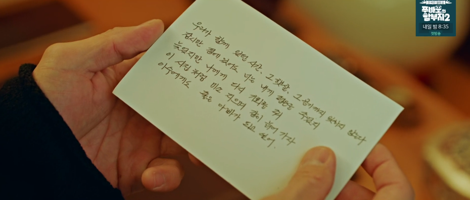 아버지가 마지막까지 머물던, 이수 엄마와 이수 셋이서 함께 살고 싶었다던 집에 온 이수는 아버지의 유품들을 보다가 아버지가 소중하게 간직하던 엄마의 사진과 아버지의 진심이 담긴 편지글을 발견합니다.