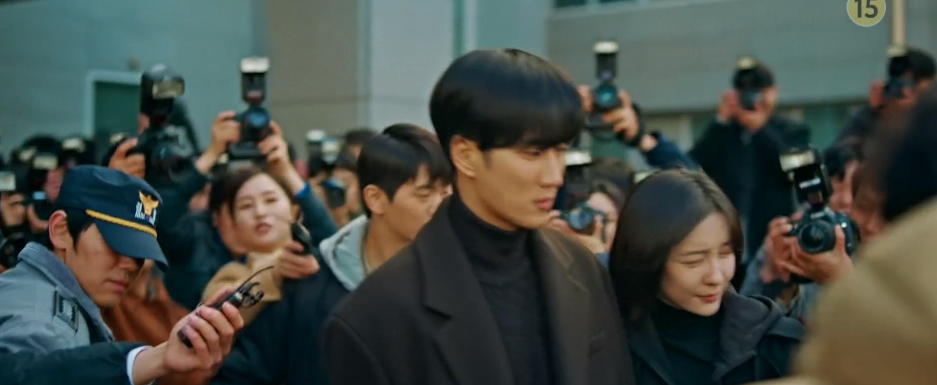진회장이 죽기전 마지막으로 만난 이수에게 몰려든 기자들. 강현과 준영, 동료들이 이수를 감싸주고, 마침 최이사님이 이수를 데리러 와서 급하게 차를 타고 경찰서를 빠져 나갑니다.