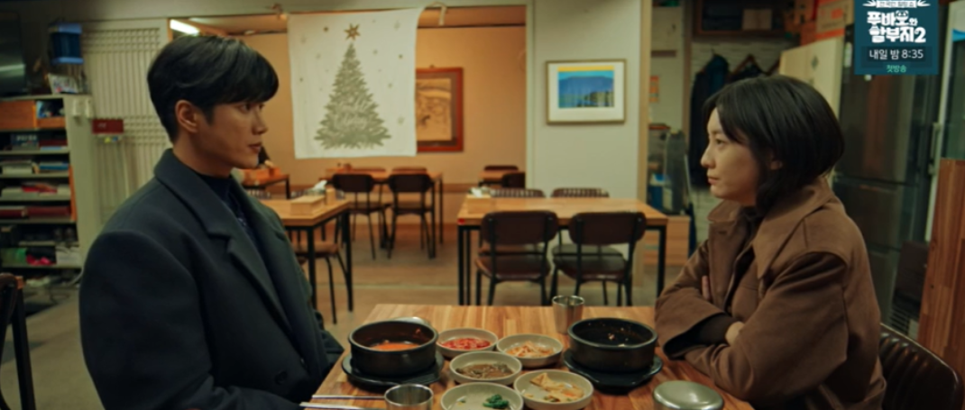 장례식장을 다녀오는 강현을 붇잡고 미숙은 이수의 상태를 걱정하며 밥이라도 한끼 해먹이고 싶다고 이야기를 합니다.