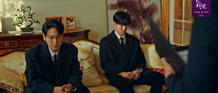 진회장의 유산은 총 20조원에 해당하며 유언장에 대한 발표를 하는데 이수는 유언장 내용을 끝까지 듣지도 않고 형이 알아서 해달라며 자리를 떠나버립니다.