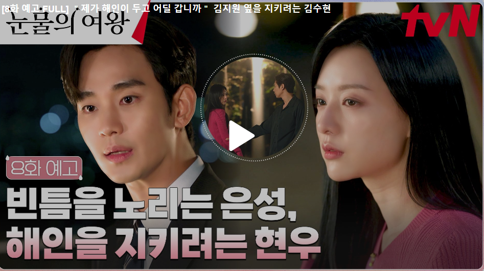 목차 눈물의 여왕 9회 줄거리 명대사& 명장면 눈물의 여왕 9회 줄거리 핵심요약 & 엔딩 ▶영상보기 [위기엔딩] 김수현X김지원에게 가까워져 오는 어둠의 그림자! 등장인물 & 인물관계도 New 눈물의