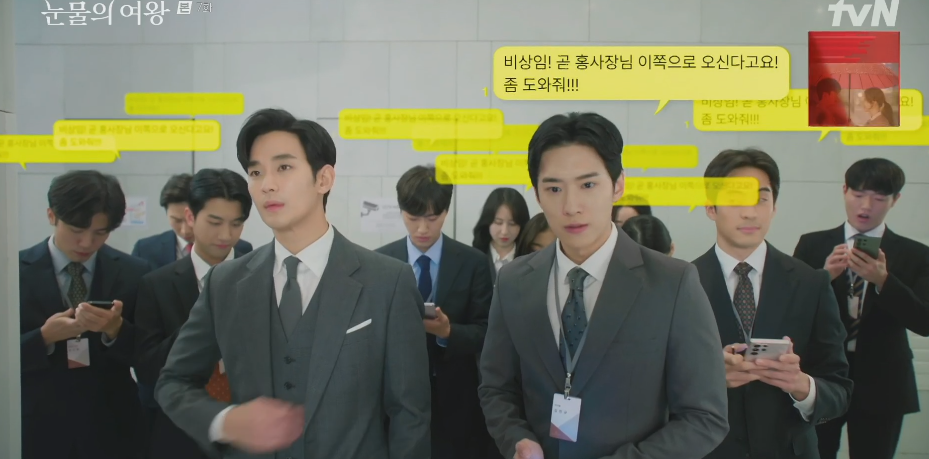 해인과 현우의 사이가 나뻐져서 덩달아 눈치보면서 힘들어진 직원들. 나비서와 백비서는 엘레베이터, 식당등 해인과 현우의 동선이 겹치지 않도록 긴밀하게 공조를 하면서 애를 쓰고 있습니다.