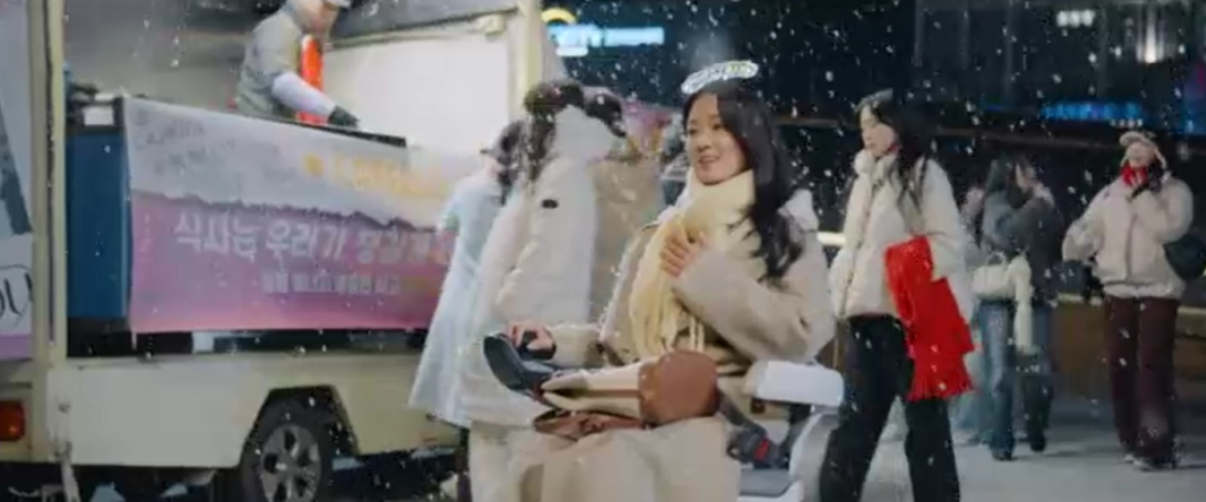낙심하기도 잠시, 임솔은 굴하지 않고 추운 겨울날 야외 전광판에서 류선재를 응원하며 콘서트를 감상합니다.