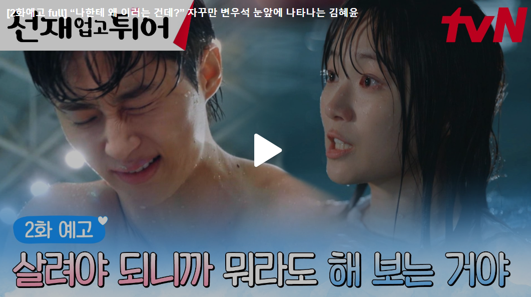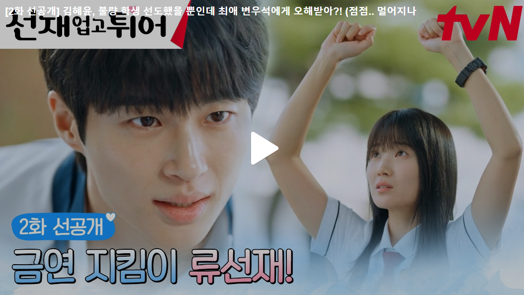 목차 선재 업고 튀어 2회 줄거리 명대사& 명장면 선재 업고 튀어 2회 줄거리 핵심요약 & 엔딩 ▶영상보기 [구원엔딩] 교통사고 위기의 김혜윤, 구해낸 변우석! 등장인물 & 인물관계도 New 선재 업고