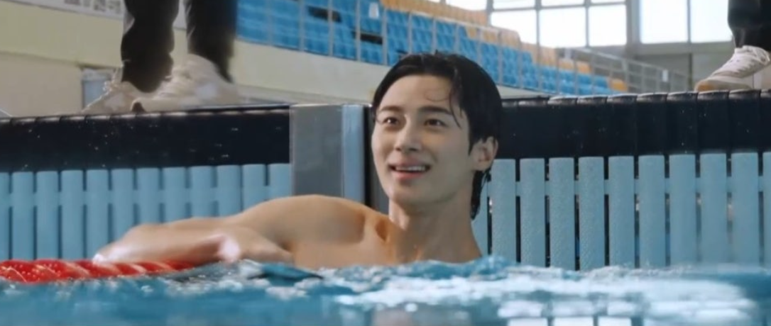 과거의 데뷔전, 수영선수였던 고등학생 류선재는 아무렇지도 않게 수영을 하면서 좋은 기록을 세우고 있습니다.