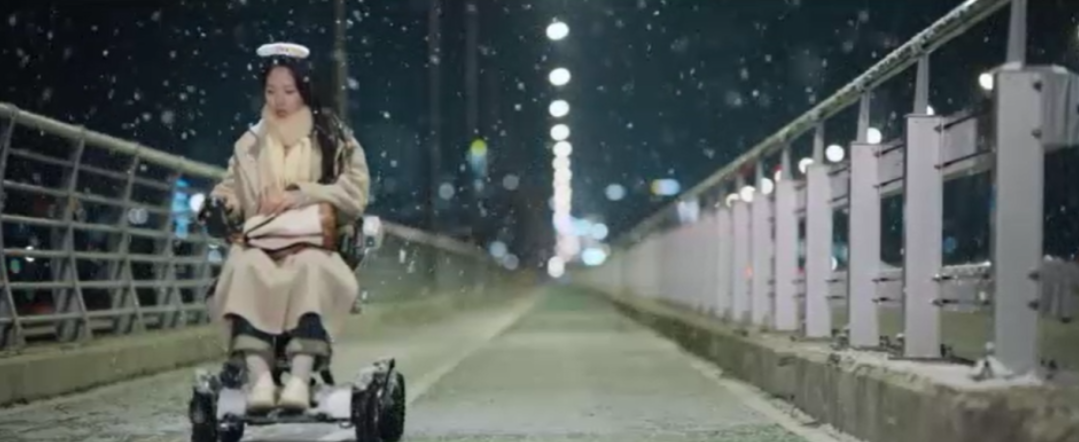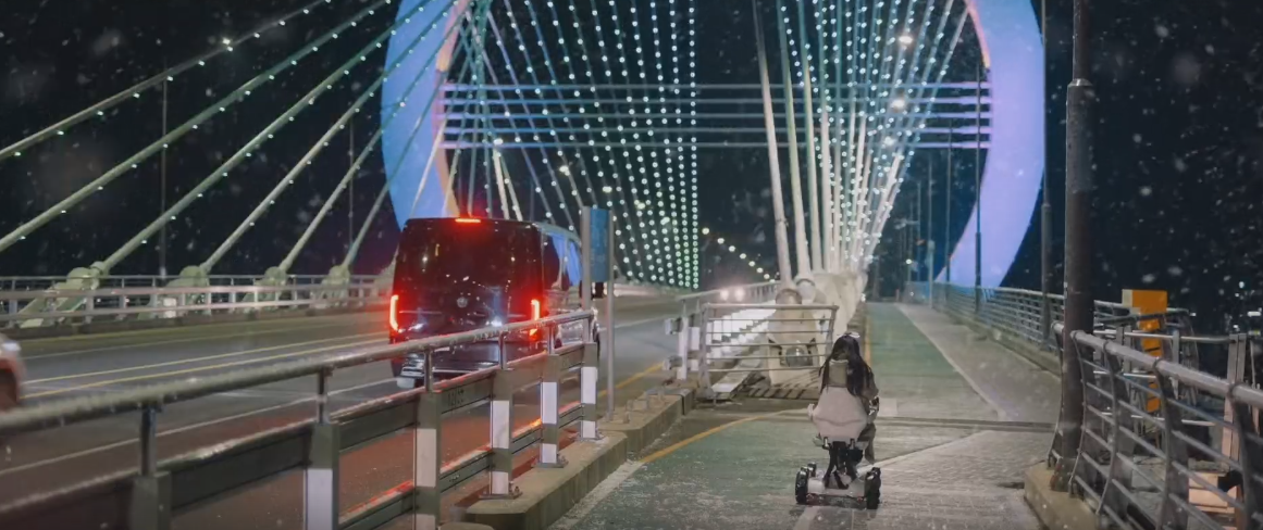 임솔은 혼자 버스정류장까지 가는데 하필이면 운수사나운날.. 전동휠체어가 다리 한복판에서 멈춰버립니다.