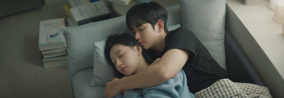 먼저 잠이깬 해인은 쇼파에서 잠들어있는 현우를 애정어린 눈길로 바라보는데, 잠든척 눈감고 있던 현우는 5분만 더 자자며 해인을 품에 안고 다시 눈을 감습니다.