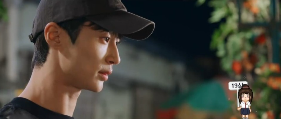 자신이 헛것을 본줄 알았다가 임솔이 실제 누워있음을 알고 옆에앉아서 임솔을 사랑스러운 눈길로 바라보는 선재.