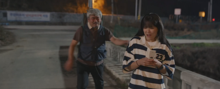 외진 곳에서 집으로 돌아가기 위해 버슬르 기다리는데 취한 낚시꾼이 솔이에게 접근해서 말을 걸려고 하고 솔이는 도망을 갑니다.