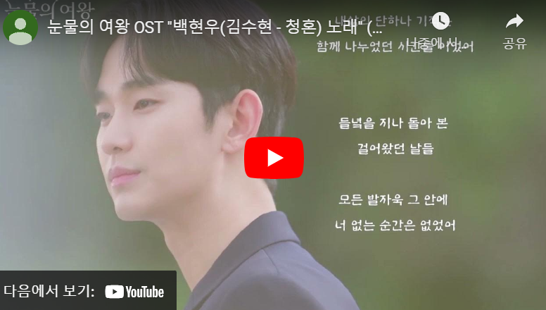 ▶ 눈물의 여왕 OST 16회 최종회 엔딩곡 청혼 가사 , 김수현