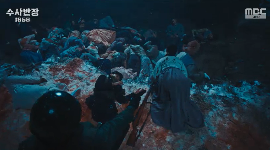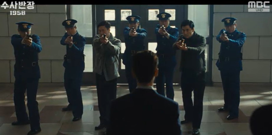 영한은 새로운 서장 백도식을 보자마자 영한이 학도병 시절 민간인을 무참히 공격하던 백도식 대위임을 한눈에 알아봅니다.