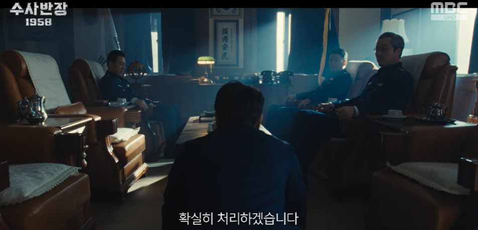 친일파로 활동하다가 이제는 치안부 관리들이 된 사람들의 사조직인 신광회에 불려가서 골칫거리를 해결하라는 압박을 받는 최서장.