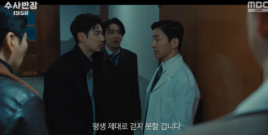 회식을 마친 유반장은 피습을 당해 과다출혈로 현재 위중한 상태. 회복이 된다고 해도, 발뒤꿈치 절창으로 평생걷지 못할거라는 진단을 받습니다.