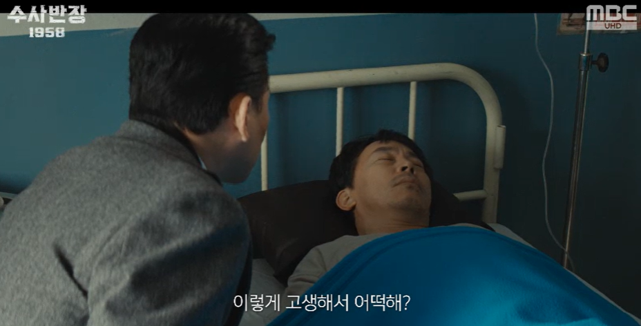 신임 종담서장 백도식은 자신이 그렇게 만들어 놓고는 뻔뻔하게 유반장 병문안을 갑니다.