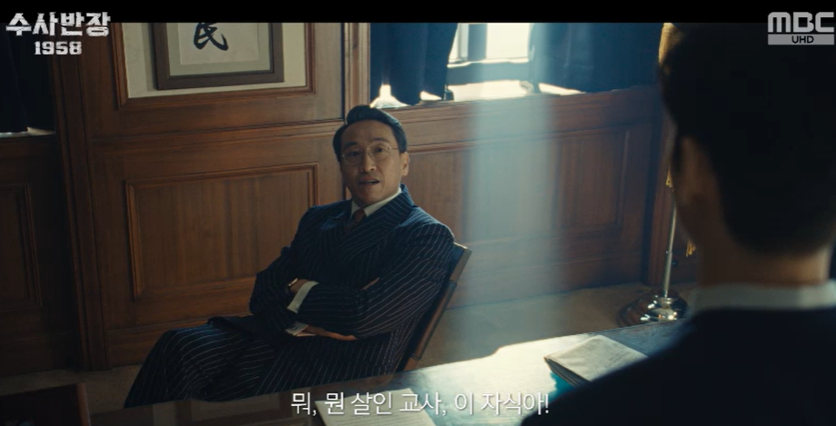 자신은 정당하게 체포를 하던것이였다며 억울함을 호소하는데 , 이미 최실장과 함패거리인 종남경찰서 서장 백도식은 되려 영한이 하극상으로 잘못한 것처럼 몰아갑니다.