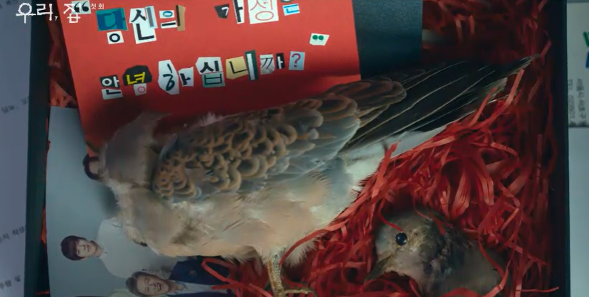 일과 가정. 모든 것이 완벽한것 같은 영원에게 소포가 하나 오고 그안에서 죽은 새, 가족사진, 당신의 가정은 안녕하십니까란 카드를 보고 영원은 화들짝 보고 영원은 화들짝 놀랍니다.