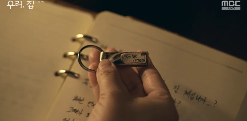 비밀번호로 가족사진에 적힌 날짜를 입력하자 금고가 열리고 영원은 수첩하나를 발견합니다.