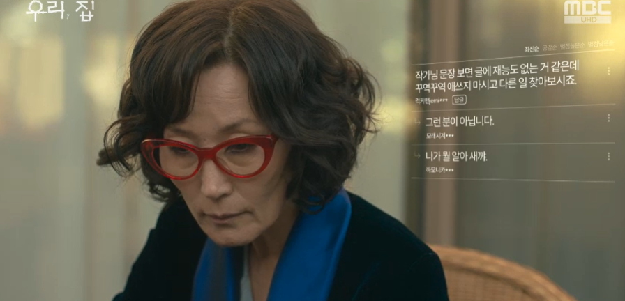 아침식사를 마치고 영원은 남편과 아들을 나란히 보내고 들어오다가 악플을 읽고 있는 시어머니 홍사강을 마주칩니다.