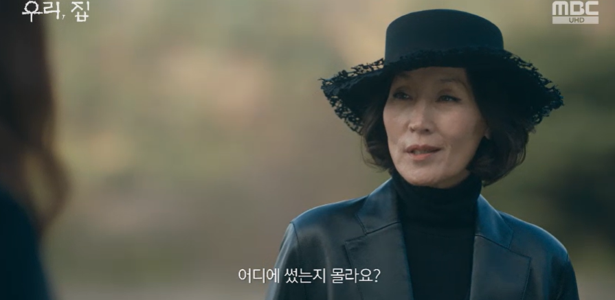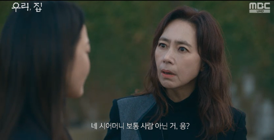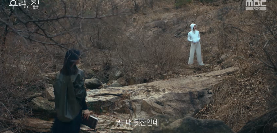 알고보니 숲솦에서 나타난 사람은 바로 시어머니 홍사강. 자신에게도 이 숲길은 산택하는 곳이라며 떨어뜨린 라이터를 찾으러 왔다고 이야기 합니다.