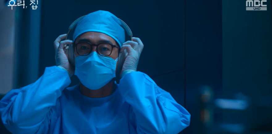 출근한 최재진은 수술을 힘들어 합니다. 원장으로서 함께 수술실에 들어갔지만 정작 소리조차 괴로운듯 헤드셋을 끼고 음악을 듣고 실질적인 수술은 동료의사 오지은이 알아서 합니다.